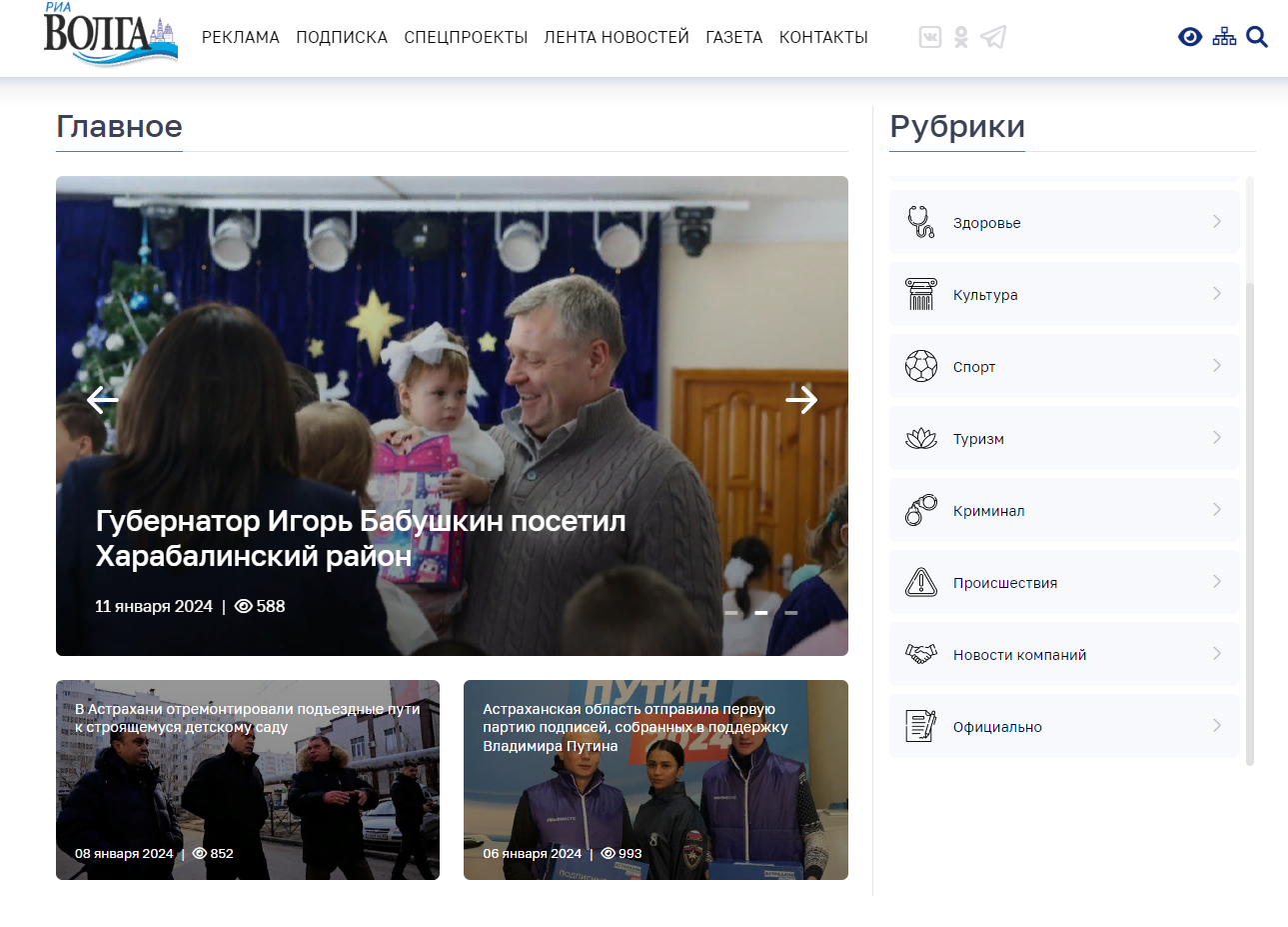 ГлавнаяДеятельностьЦифровое портфолиоОфициальный сайт сетевого издания РИА «ВОЛГА» Вернуться назад Официальный сайт сетевого издания РИА «ВОЛГА»Поделиться: Новостной сайт регионального информационного агентства «ВОЛГА»