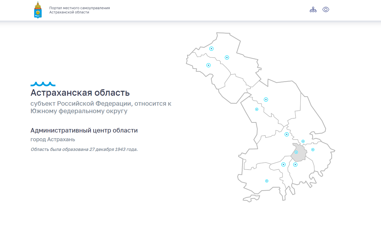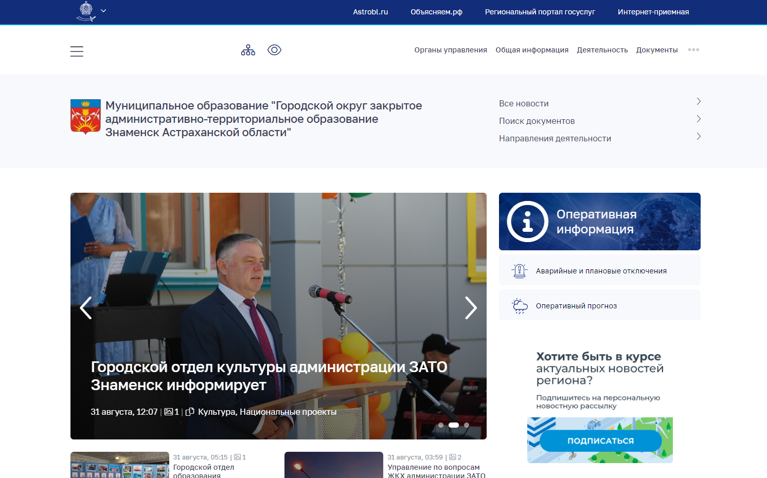 - Интеграция сайта муниципалитета с ресурсами и сервисами Правительства Астраханской области (порталом открытых данных Астраханской области; Единой навигационной панелью «АстроблБар»).